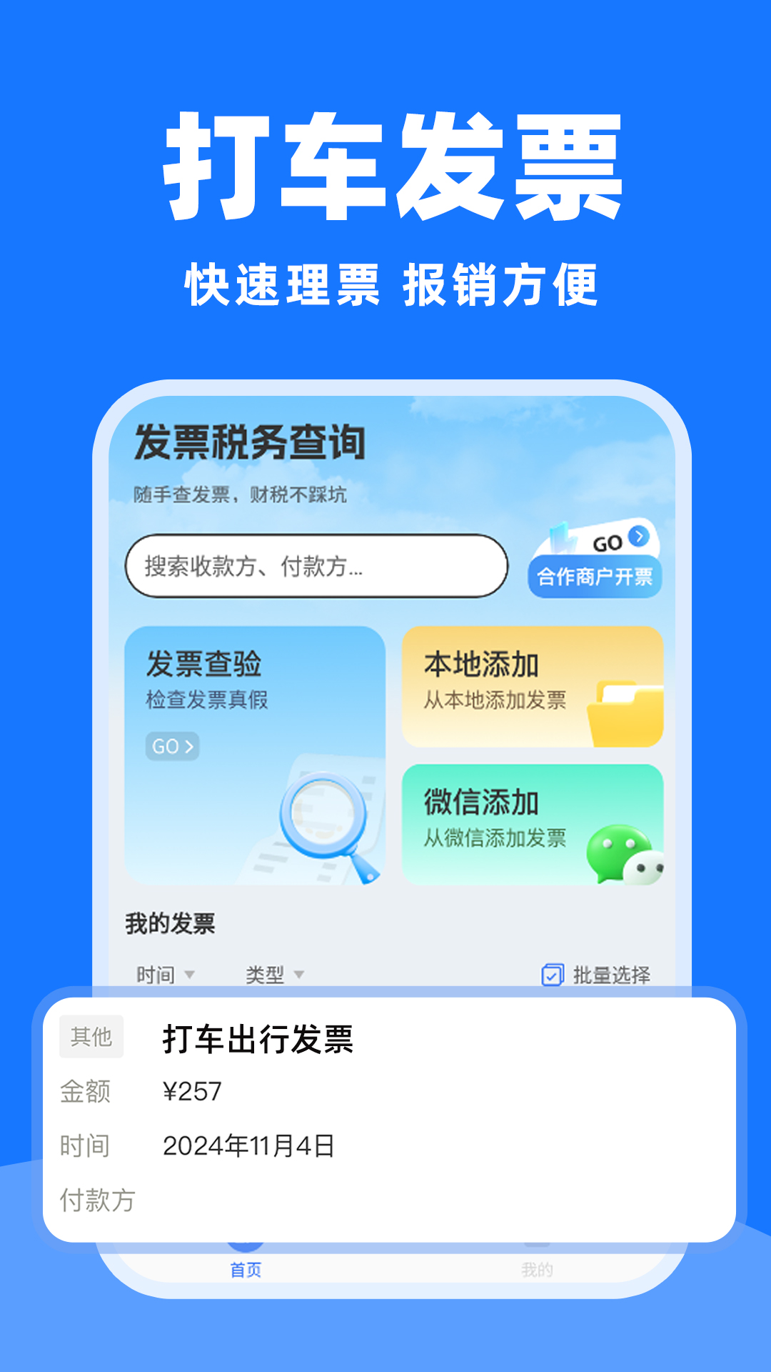 出租车发票助手app是一款专为优化打车发票管理流程而打造的智能应用,让发票处理变得更为高效、安心,运用先进的智能管理技术,帮助用户轻松整理、安全存储发票信息,确保数据不丢失、不泄露,无论是忙碌的上班族、频繁出行的商务精英,还是需要细心打理家庭打车支出的用户,都能在这款应用的助力下,省去繁琐的手工操作,让发票管理变得简单又高效。