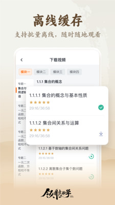 1、支持课程视频离线缓存,通勤、户外等无网场景也能随时学,回到联网状态自动同步学习进度。