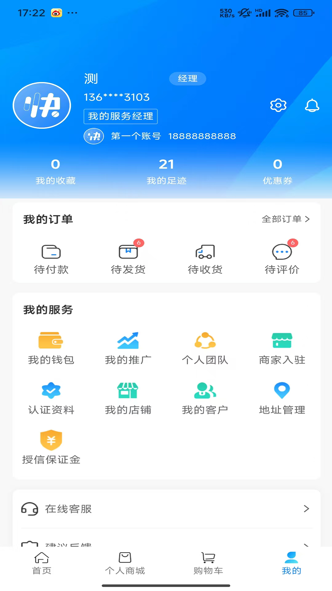 4、进入我的专区,支持订单管理以及收货地址的管理。