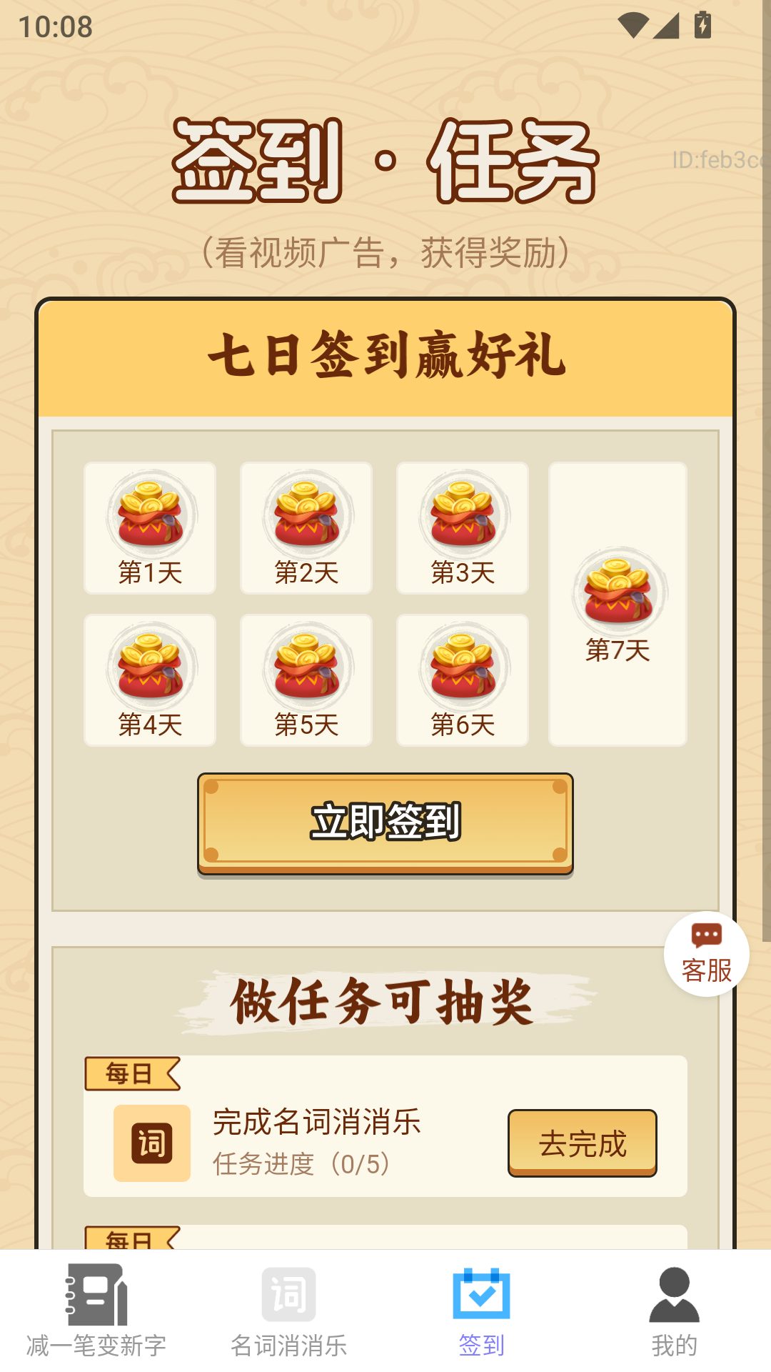 金福连连赚app是一款融合趣味文字游戏手赚创新应用,打造了减一笔变新字与名词消消乐两大核心玩法,不仅挑战你的汉字智慧极限,更让你在轻松愉快的氛围中,将知识转化为实实在在的现金收益,无论您是汉字文化的忠实爱好者,还是寻求碎片时间高效利用的精明玩家,app都能满足你对智慧与财富的双重渴望,让每一刻闲暇都闪耀出金色的光芒。