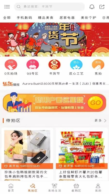 2、来到软件竞拍区可使用0元拍场、9.9专区、年货节、匠心工艺等功能。