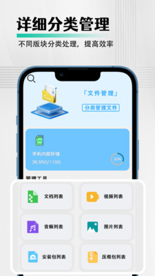 4、提供文件分类管理功能,可以高效管理和查找手机中的不同文件。