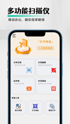 2、支持文件识别、文档裁剪、证件照制作、水印添加等功能;
