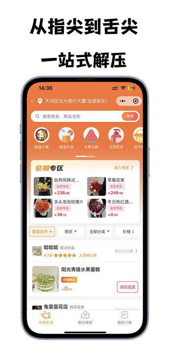 1、整合本地商家资源,汇聚大量同城好物,涵盖生鲜果蔬、日用百货、特色手作、本地餐饮等品类。