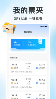 2、行程管理功能太实用了,全家人的车票都能在一个页面查看,再也不用翻聊天记录找订单了。