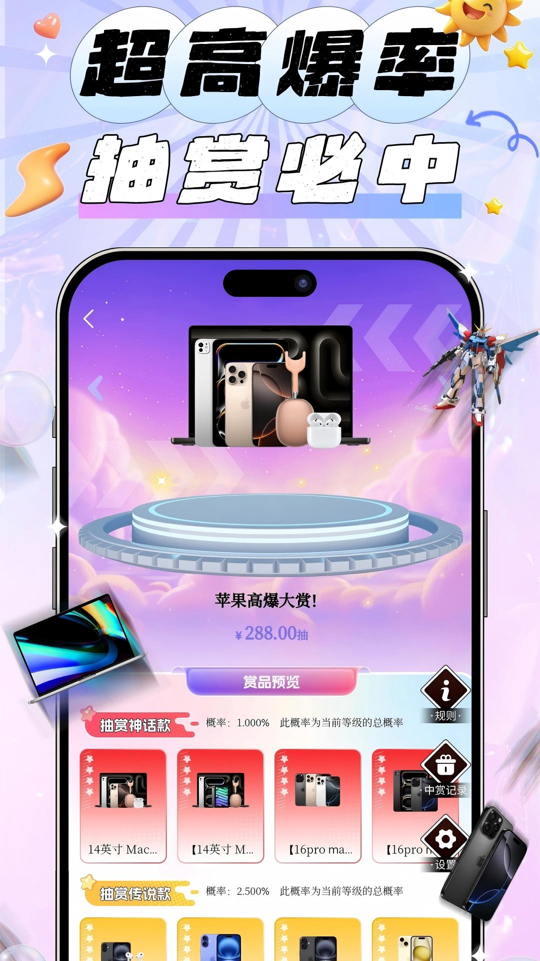1、是潮流盲盒商城,汇集各类潮玩、美妆等好物,线上开盒流程简单,从选盒到拆箱的惊喜感全程在线。