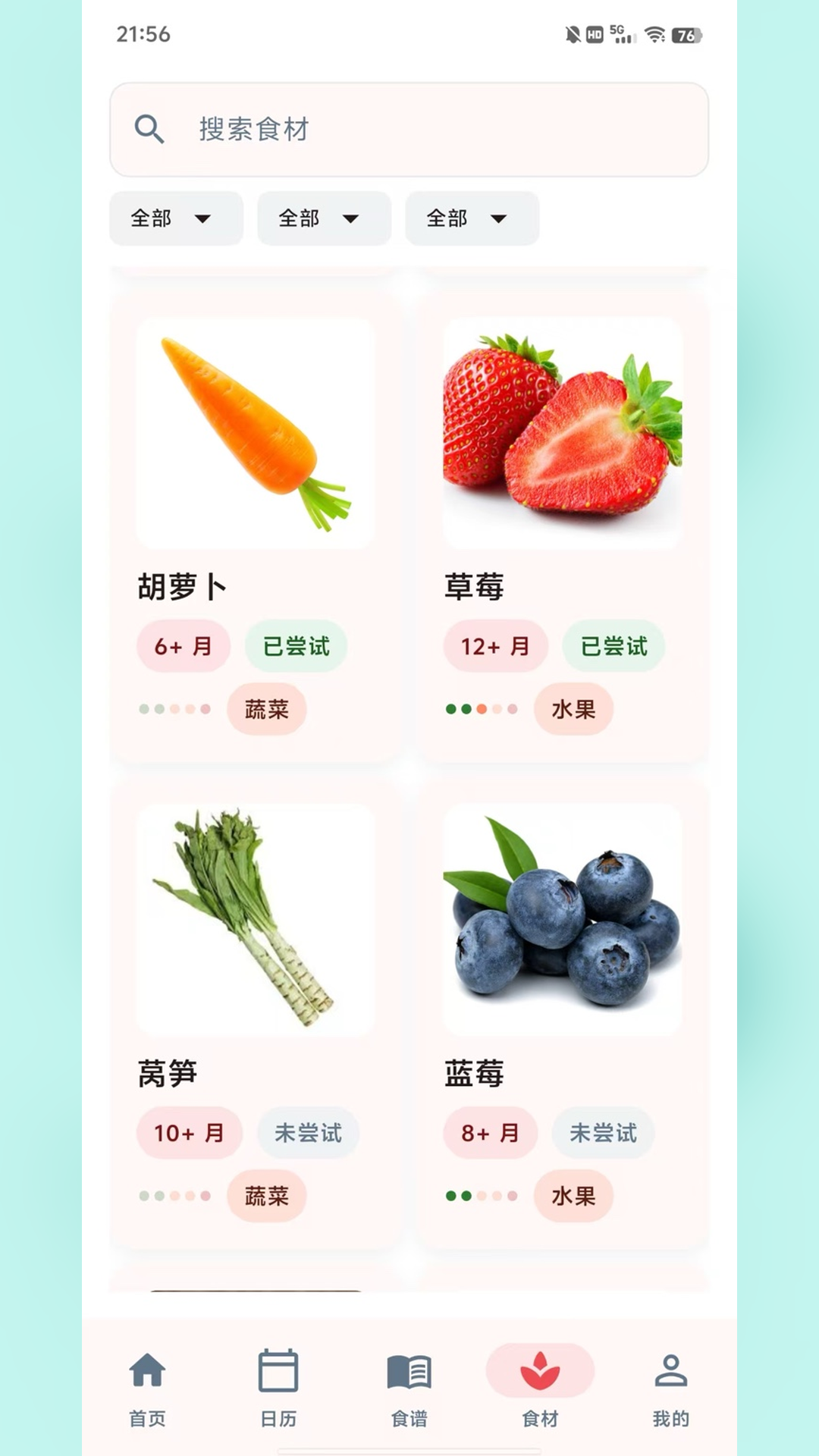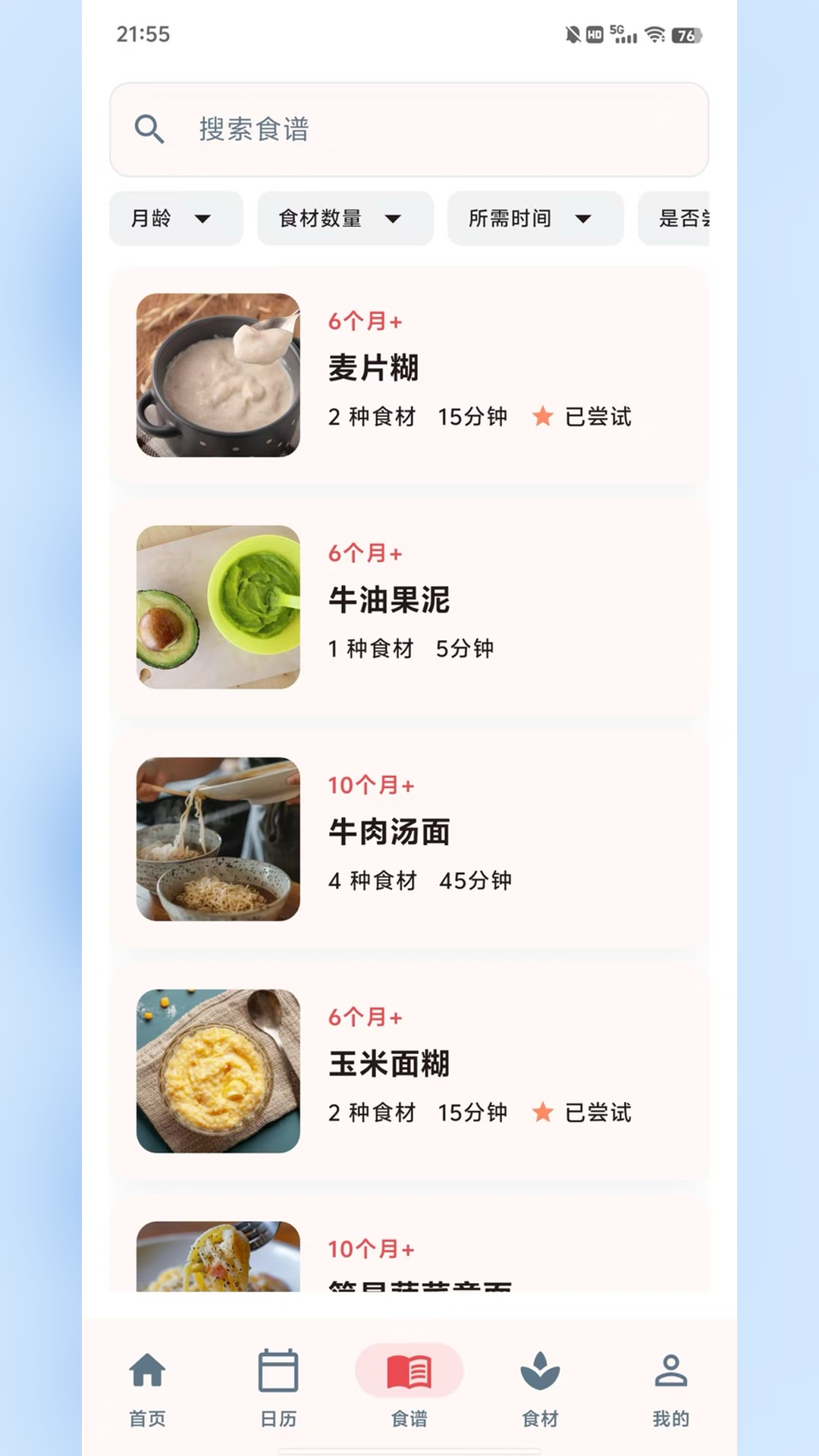 3、应用根据宝宝的年龄和成长阶段,为家长推荐合适的辅食食材和搭配方案。