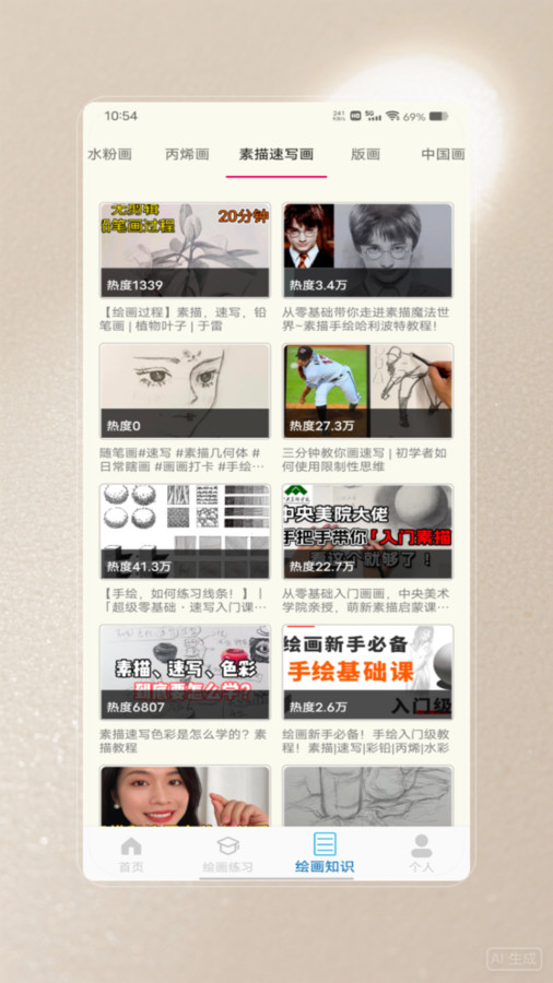 3、下方还提供了绘画练习板块,可以在这里练习各种类型的绘画。