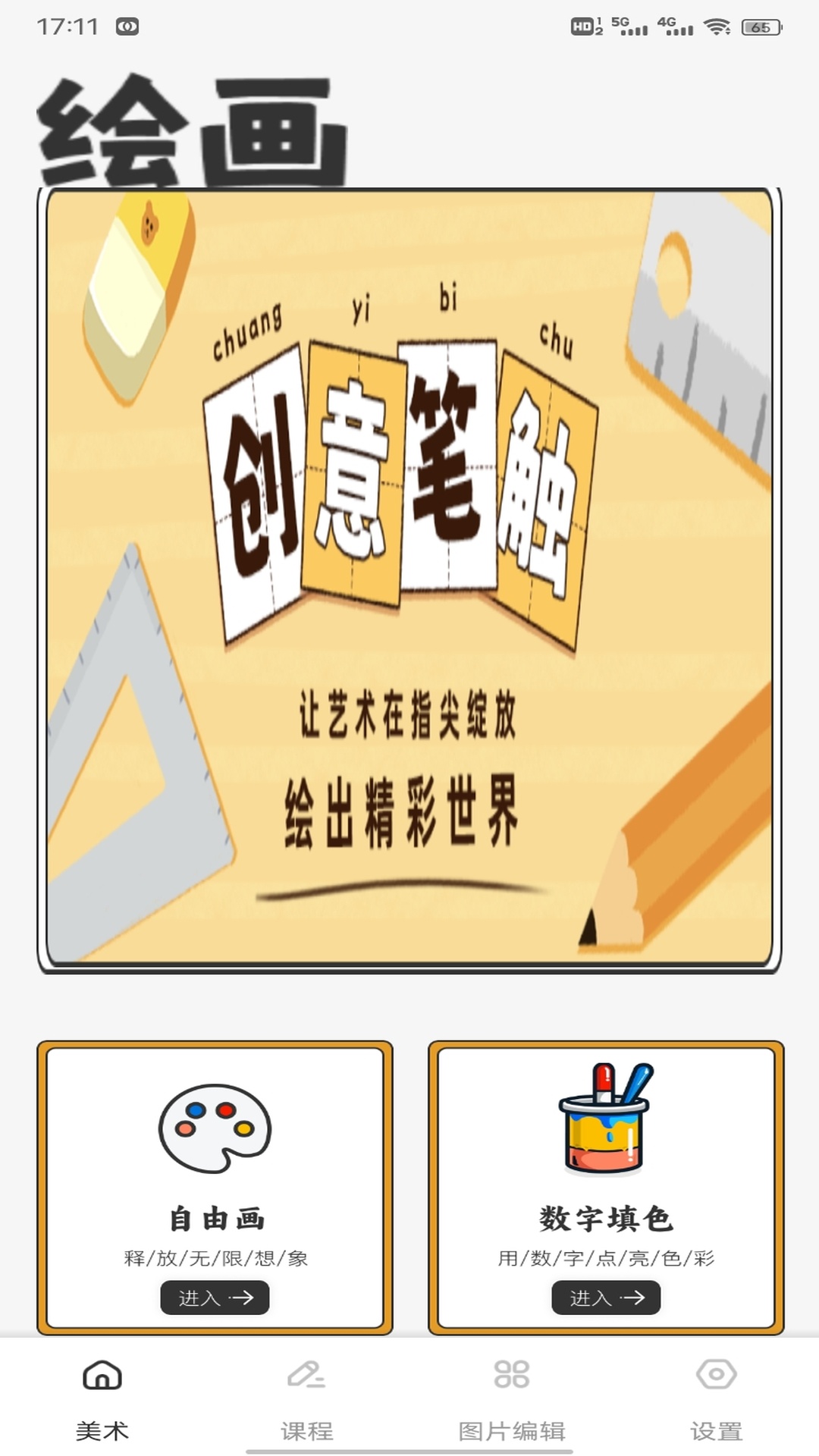 2、进入首页可以看到丰富的功能,学习绘画更加轻松。