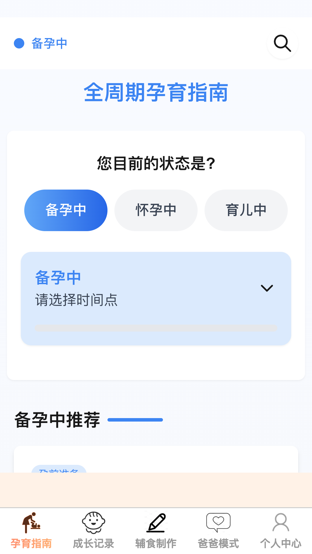 2、进入应用根据自身所处孕育阶段,选择相应板块,无论是备孕期的哪个阶段一切尽在掌握中。