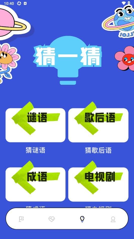 4、来到软件猜一猜页面可进行谜语、歇后语、成语、电视剧等游戏。