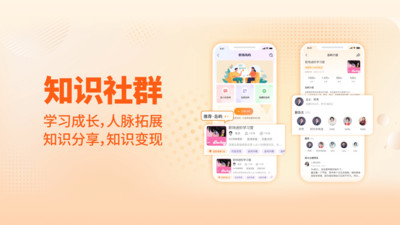 2、建立知识社群促进用户间的学习成长与人脉拓展,实现经验共享与价值转化。