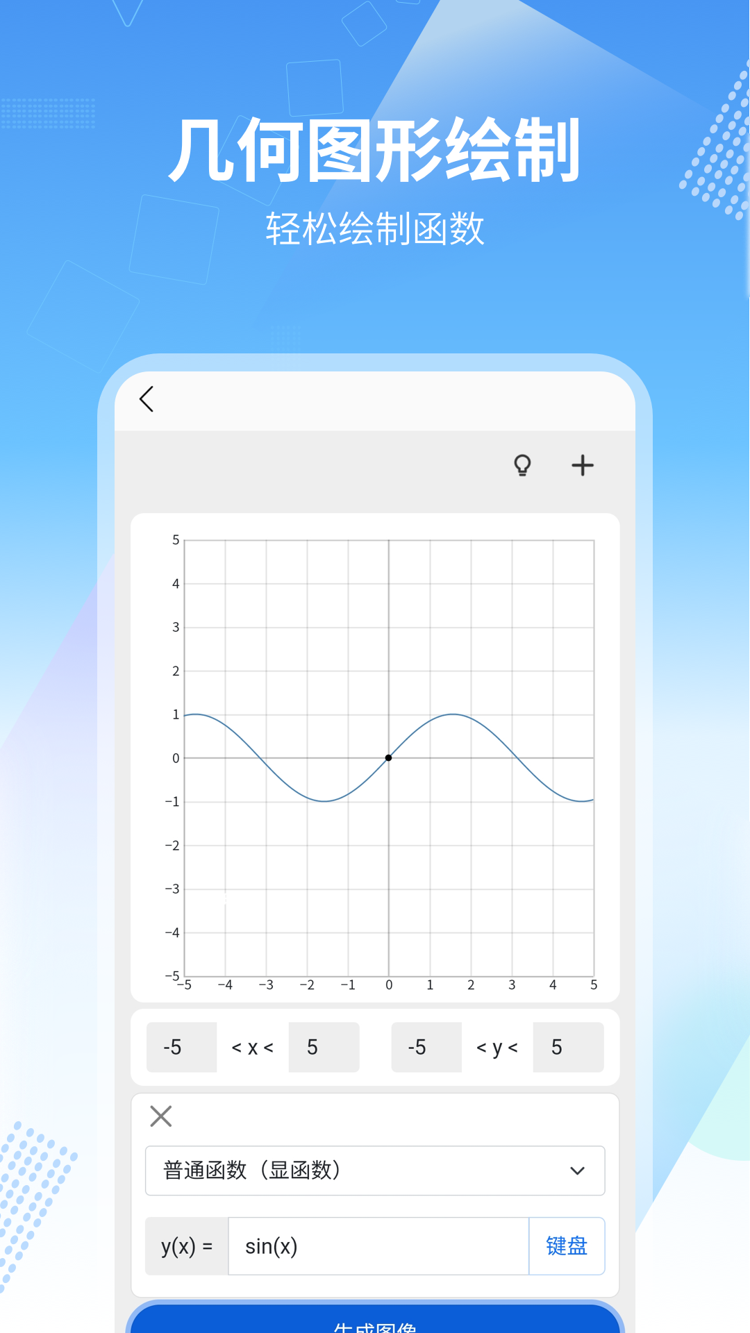 1、输入函数表达式即可即时生成对应图像,直观展示函数曲线的变化趋势与特征。