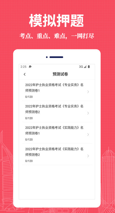 1、平台汇聚超万道优质考题,细分基础护理、内科、外科、妇产科等多个模块。