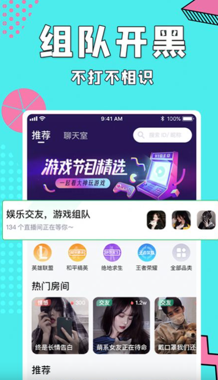 各种热门游戏大神、高甜小姐姐24小时随叫随到,分分钟匹配到声音好听、技术超神的小姐姐小哥哥们一起组队开黑
