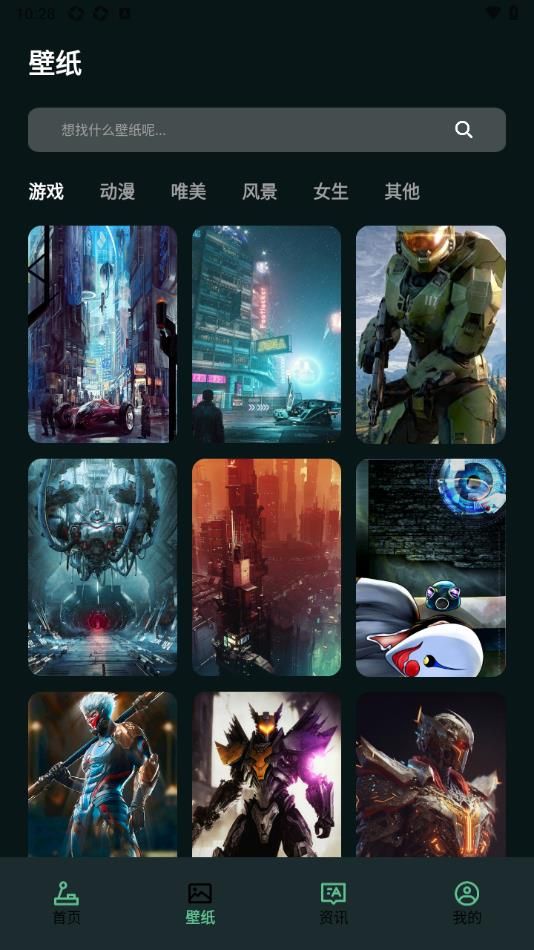 2、来到软件壁纸页面可查看游戏、动漫、唯美、风景、女生等类型的壁纸。