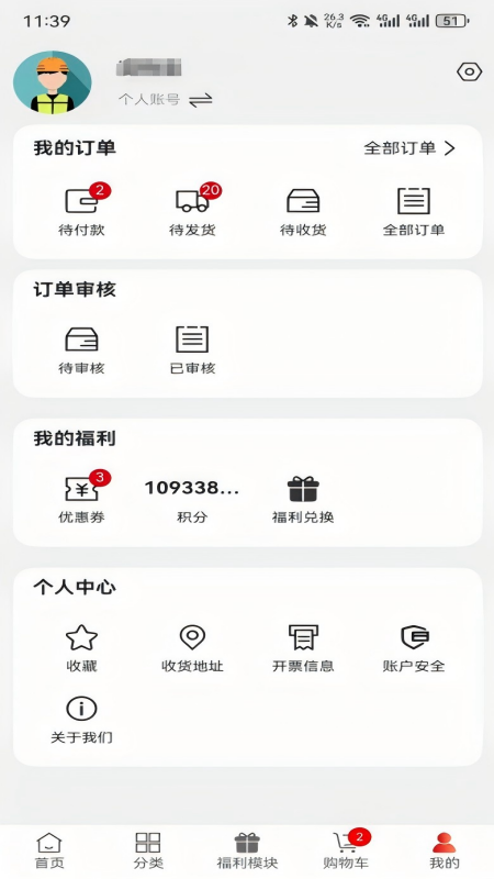3、进入到个人中心,可以看到详细的个人账号管理界面。