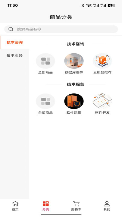 3、进入到【分类】,可以看到详细的咨询以及服务信息,根据需求筛选。