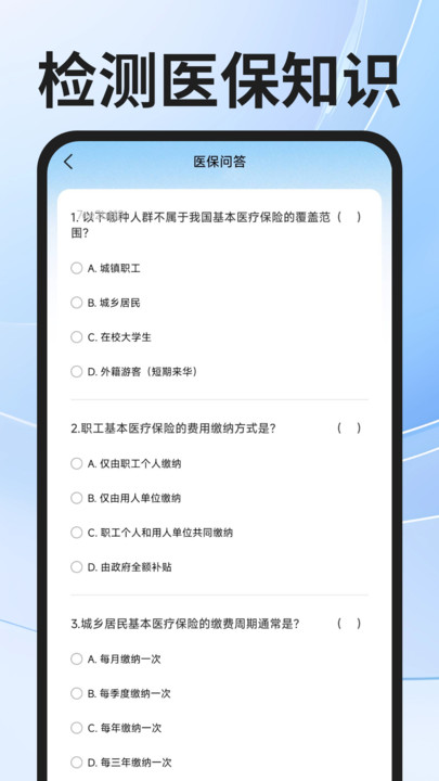 电子社保医保管理app实时更新各地医保和社保政策资讯,确保用户能够及时了解最新的政策动态,支持社保基数计算功能,用户可以轻松计算出缴费基数,确保缴费合规,提供专属的医保管家服务,帮助用户轻松管理医保账户,获取生活保障,提供异地报销政策的详细解读,帮助用户在异地就医时了解报销流程和要求,内置医保知识问答功能,用户可以随时查询常见医保问题的答案,轻松理解政策要点。