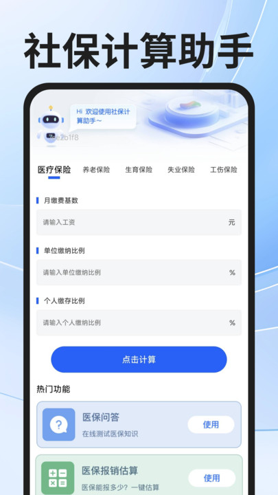 1、App内置智能计算工具,用户只需输入工资收入、缴纳比例等基础数据,即可快速计算出每月需缴纳的社保和医保金额。
