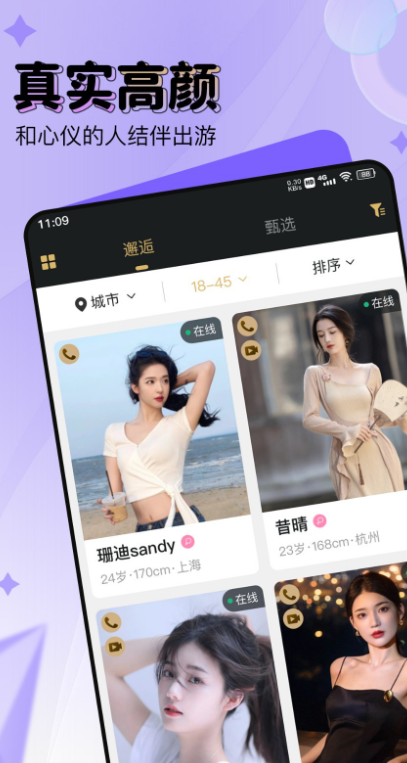 3、安全方面,采用实名认证与真人审核机制,杜绝虚假账号与照骗。