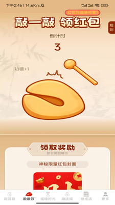 3、轻敲木鱼,不仅可领取独特红包封面和红包,更能在每日的敲击中,感受好运福气的源源不断。