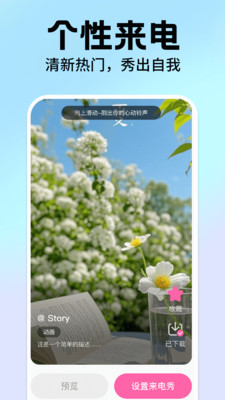 3、提供动态来电秀模板,涵盖动漫、科技、自然等风格,来电时自动播放动画,搭配铃声打造视听体验。