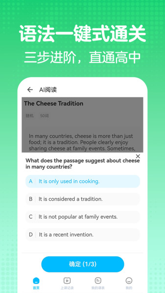 1、基于智能评估,为不同起点学员规划个性化进阶路线,用户都能在这个沉浸式的平台中找到适合自己的节奏。