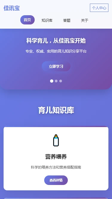 2、进入首页后,就能看到育儿知识库,可以让用户轻松学习科学育儿的技巧。