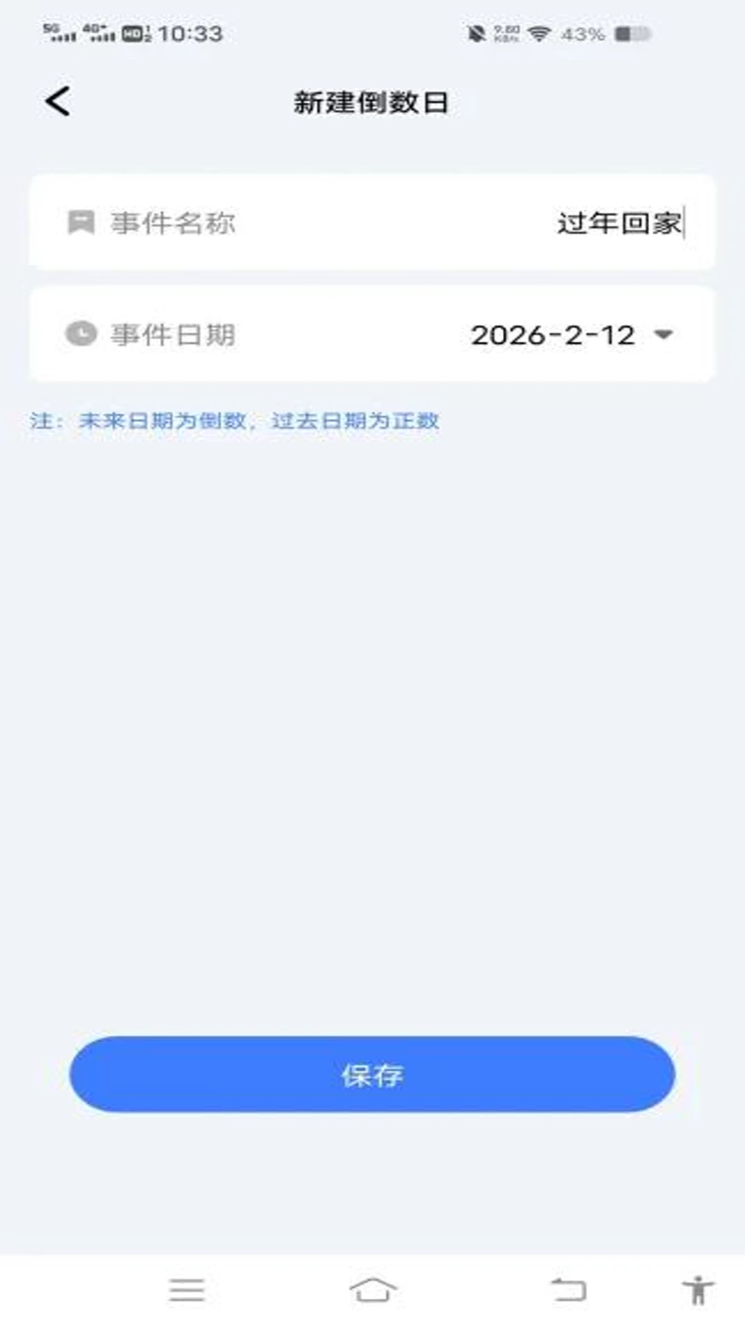 免费倒数日纪念app支持周视图月视图,方便用户灵活查阅日程安排,添加桌面小组件,方便用户快速查看倒数日和日程,用户可以为每个事件自定义背景图片,让记录更加个性化,支持将事件分享到社交平台,与朋友分享重要时刻,支持数据云端同步,更换手机也能保留历史数据,提供数据备份与还原功能,防止数据丢失,帮助用户自动清理过期倒数日事件,保持列表整洁。
