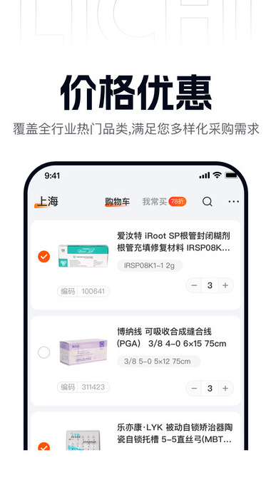 励有惠app是一款专为牙科行业提供的商品交易软件,在这好比是批发市场,用户需要的各种器材都是有的,支持快速在线输入你想要的商品关键字,也支持按照不同的商品分类进行挑选,不管是单价购买还是批发购买都是可以享受折扣福利,用户购买的过程中还可以领取免费的优惠券,下单成功了个人订单详情也将会一目了然,任你及时关注最新物流动态。
