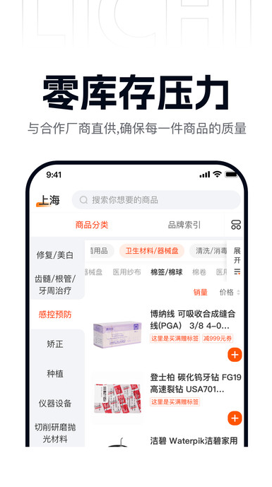 2、按牙科器材属性进行精细化分类,方便用户按品类有序挑选。