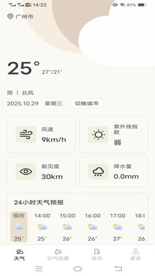 2、打开app,首页即展示当前位置的实时天气状况,包括温度、湿度、风速等关键信息,一目了然。