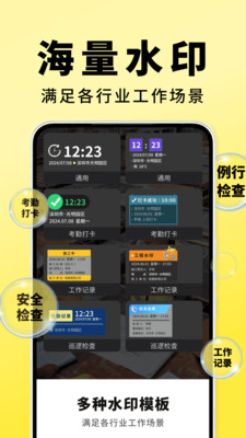 2、海量水印覆盖多场景,从考勤打卡、工程巡检到旅行记录,不同行业都能找到适配的专属模板。