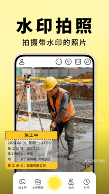 1、水印拍照支持地点自由修改,拍摄时实时预览效果,还能自动同步时间、天气,信息精准且防篡改。