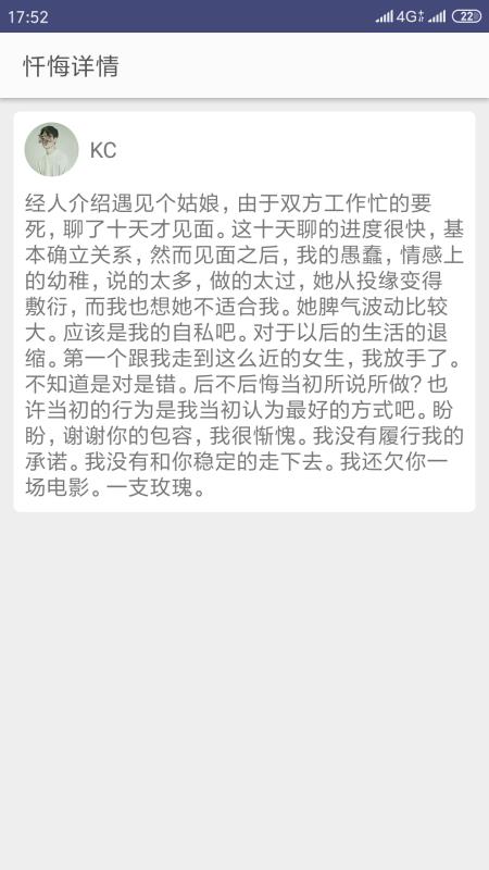 2、开放所有用户分享的匿名忏悔记录,方便参考他人经历并获得情感共鸣理解。