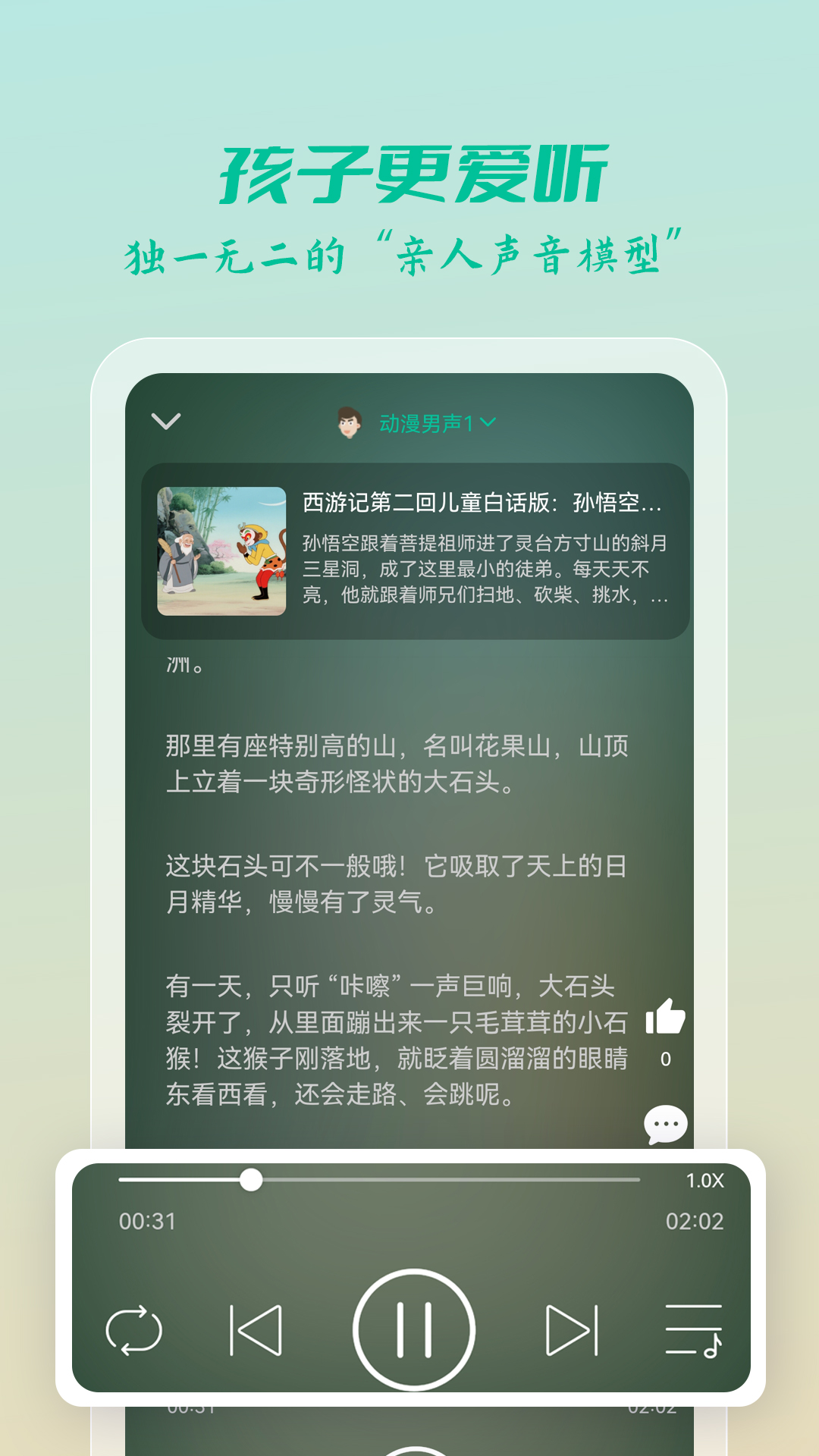 4、支持定制音色,自定义故事内容,让家长轻松给孩子讲故事。