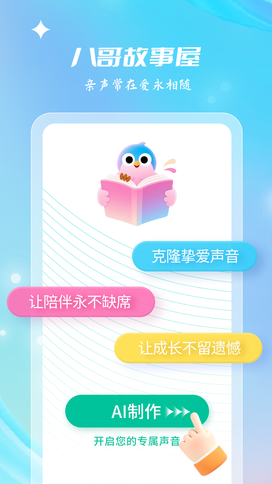 八哥故事屋app是一款可以定制音色讲故事的英语启蒙软件,平台上包含了丰富的故事和绘本,丰富的分级阅读读物让孩子们在听故事的过程中培养好的语感,轻松实现英语启蒙教学。用户可以使用这款软件录音生成声音模型,平台上有很多的故事素材可以选择,能够一键生成专属的有声故事,让家长们更好的给孩子讲故事,还能切换不同的声线。