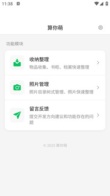 2、首页便呈现各类功能的分类概览,收纳整理、照片管理、留言反馈功能都能点击使用。