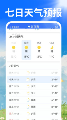 3、七日天气预报按早中晚分段展示,标注每日降水概率与温差,末页附周趋势总结,帮你提前规划一周出行。