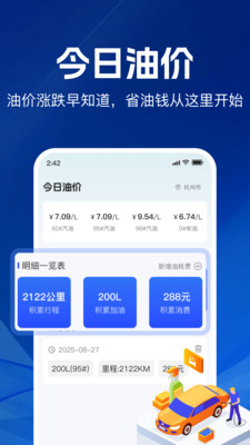 4、开启定位即可自动获取今日油价信息,还能记录油耗。
