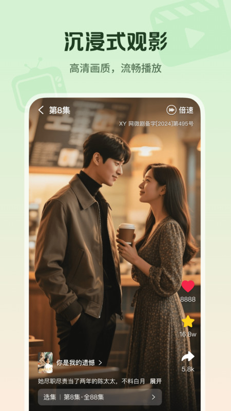 心晴免费短剧app是一款热门的短剧视频软件,用户在线可以进行搜索观看自己感兴趣的短剧,首页推荐各种高评分热门的作品,在观看过程中用户还可以设置高清画质,播放流畅。在搜索栏内可以进行搜索,打造沉浸式观影体验感。所有看过的历史记录都可以找到,用户还可以将自己喜欢的进行添加收藏!