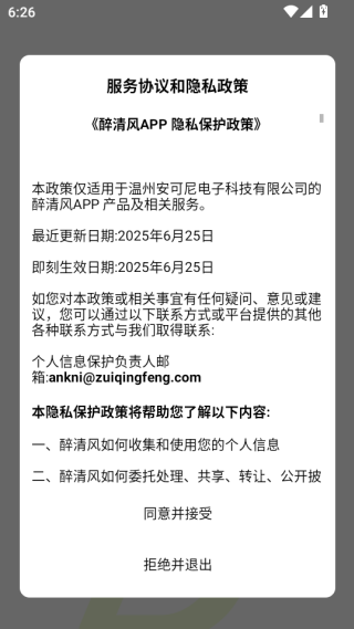2、在弹出的服务协议和隐私政策界面,点击同意并接受。