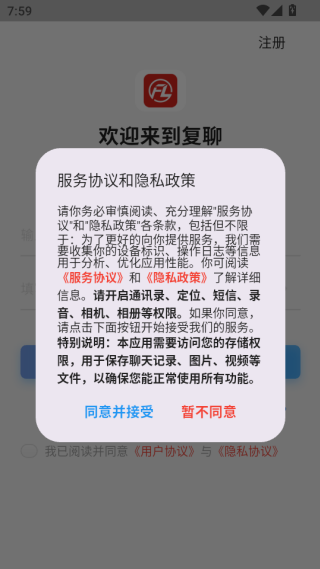 1、软件安装完成直接打开,在弹框页面点击同意并接受。