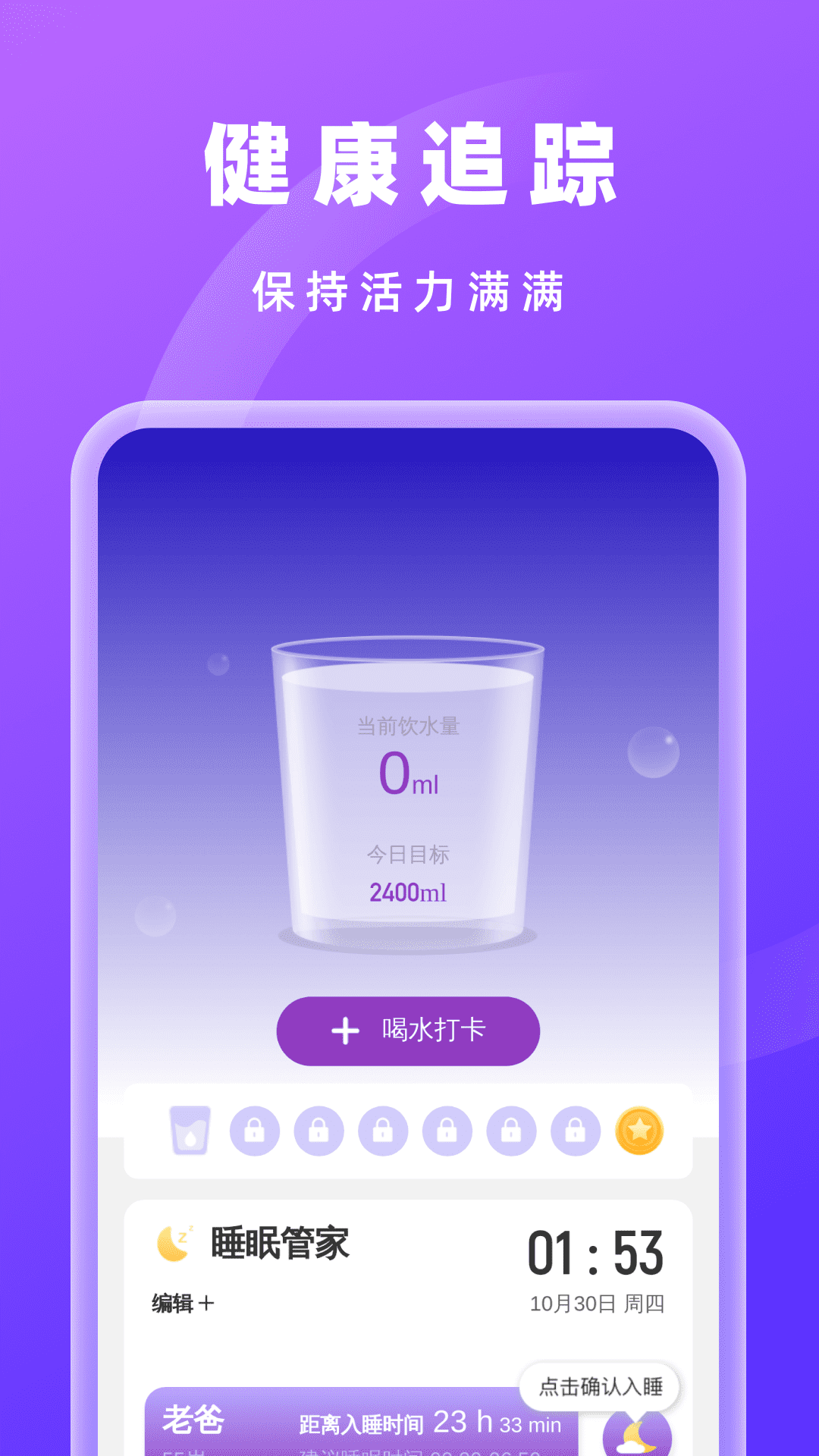 3、进入到【健康】,可以进行线上喝水以及睡眠健康打卡。