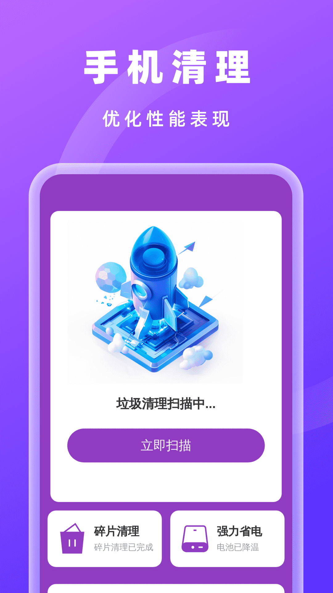 1、用户只需轻点一键清理按钮即可自动扫描手机中的缓存、广告垃圾等无用数据,快速释放存储空间,操作简单高效,适合所有年龄段用户使用。