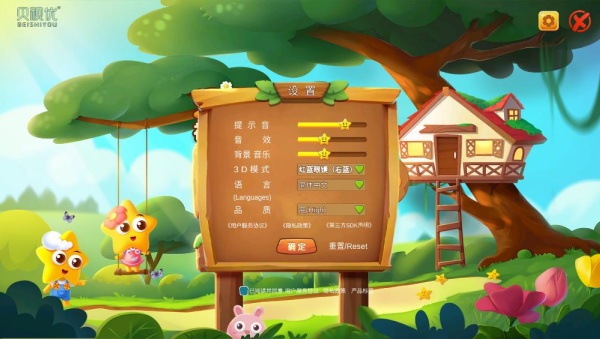 4、点击设置按钮,还能对提示音、音效、3d模式和语言进行特色的设置哦。