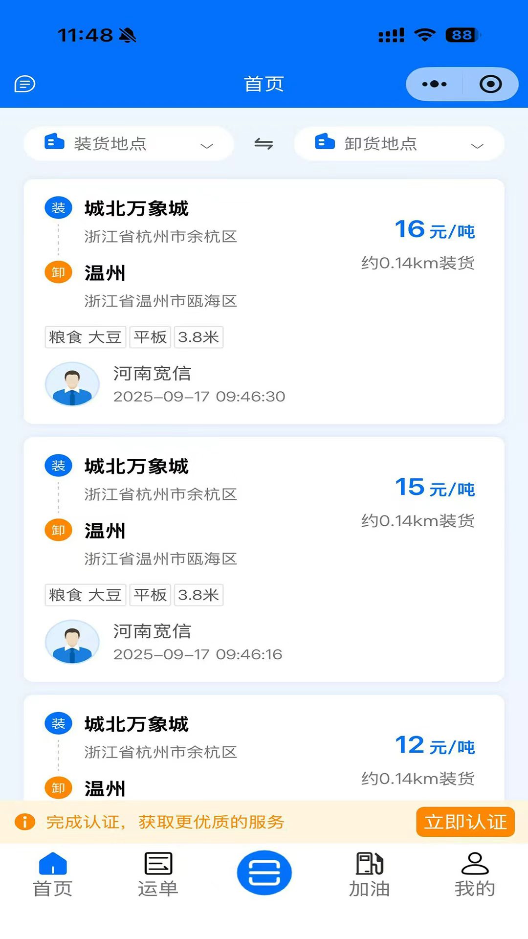 3、输入路线货量即刻获得市场参考价,支持竞价、议价、合同价三种模式。