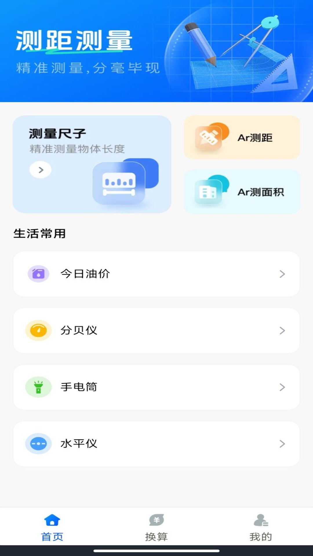 2、进入首页可以看到丰富的功能,打开手机即可轻松进行测距。