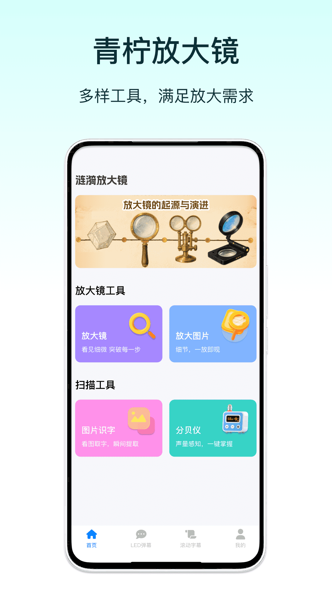 青柠放大镜app自动弹窗提醒休息,并播放护眼操动画,科学预防视疲劳,长辈也会跟着做,最近放大画面与检测数据自动存档,可随时对比查看,修表技师追踪零件磨损,一目了然,通过加密通道备份视力档案与测量结果,换机登录即可恢复,子女远程查看父母数据,关爱无距离,承诺终身无开屏广告,扫码即用不等待,公共场合快速打开放大镜,长辈再也不误点弹窗,体验清爽。